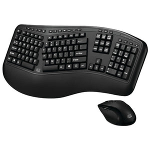 2.4GHz radio frequency wireless technology works up to 30ft; Ergonomic design with split key zones & gently sloped shape encourages natural position of hands, wrists & forearm in maximum comfort for long use; 20 built-in hotkeys for controlling multimedia tools & browsing Internet; Membrane key switches provide better tactile response & quieter typing experience & last up to 5 million keystrokes; Switch at the top of mouse allows quick & easy switching (800dpi/1200dpi/1600dpi); 2 convenient side Internet forward & back buttons for quick Internet navigation; Battery-saving on/off power switch on the base of device extends battery life;